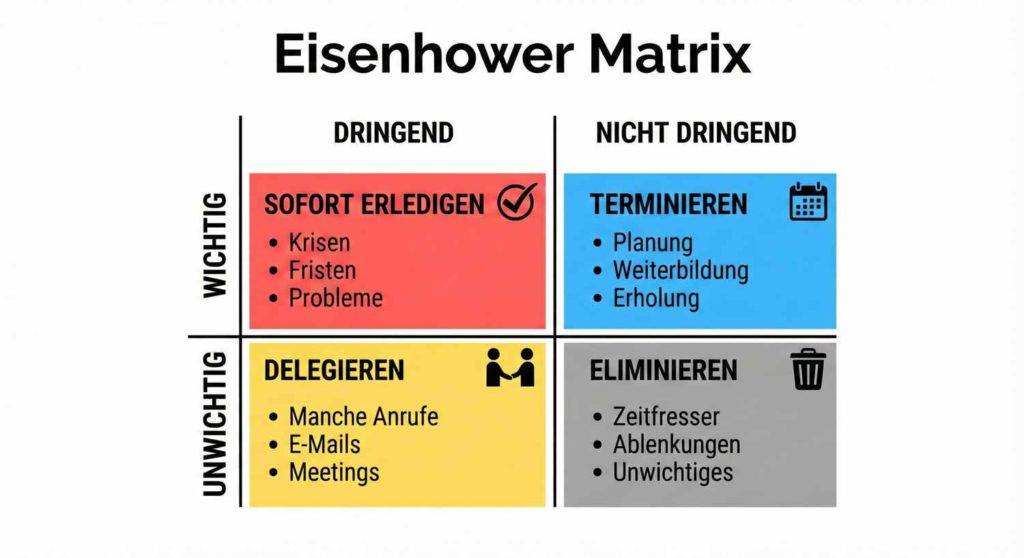 Die Methode: Ich nutze das Eisenhower-Prinzip. Ich unterscheide radikal zwischen wichtig und dringend. Ein Projektplan für einen Kunden ist wichtig und dringend – das Beantworten jeder Mail oft nur wichtig, aber nicht dringend.